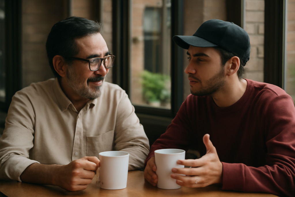 Beberapa hari setelah percakapan itu, Walid mengajakku untuk ngopi bareng di kafe dekat kantor. Kami duduk santai di meja pojok, ditemani secangkir kopi hitam yang wangi. Suasana kafe yang tenang dengan musik akustik di latar belakang membuat obrolan kami semakin mengalir.